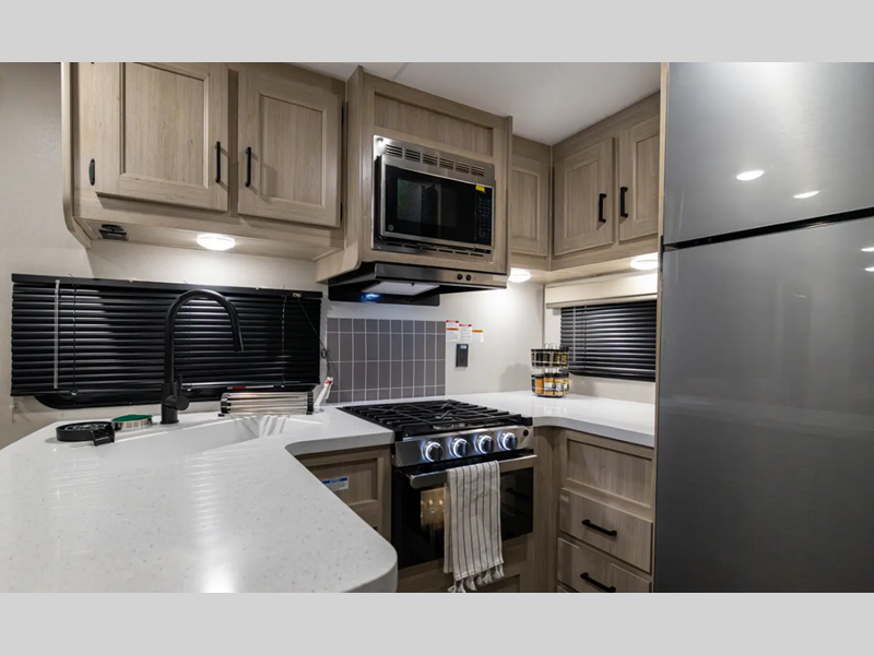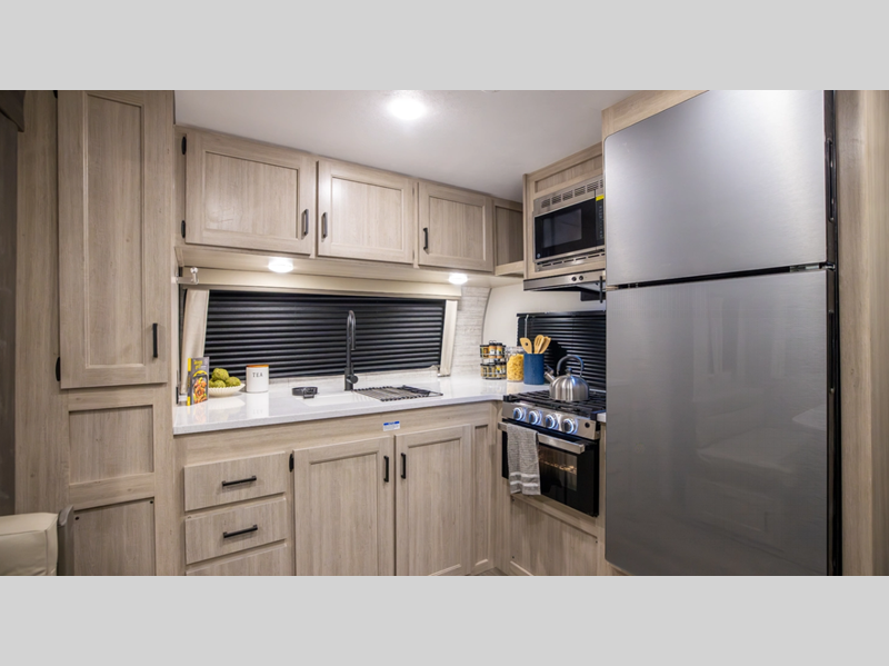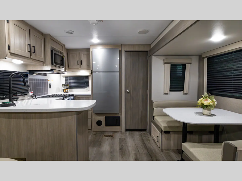 Sleeps 4 Slides 1 Length 28 ft 3 in Ext Width 8 ft Ext Height 11 ft 1 in Int Height 6 ft 9 in Hitch Weight 898 lbs GVWR 7898 lbs Dry Weight 6356 lbs Cargo Capacity 1542 lbs Fresh Water Capacity 38 gals Grey Water Capacity 44 gals Black Water Capacity 29 gals Furnace BTU 35000 btu Available Beds RV Queen Refrigerator Type GE Stainless 12V Refrigerator Size 10.7 cu ft Cooktop Burners 3 Shower Size 34" x 34" Number of Awnings 1 LP Tank Capacity 20 lbs Water Heater Type Tankless On Demand AC BTU 13500 btu Awning Info 18' Electric w/Multicolor LED Strip & Remote Axle Count 2 Number of LP Tanks 2 Shower Type Radius Electrical Service 30 amp Similar Floorplans