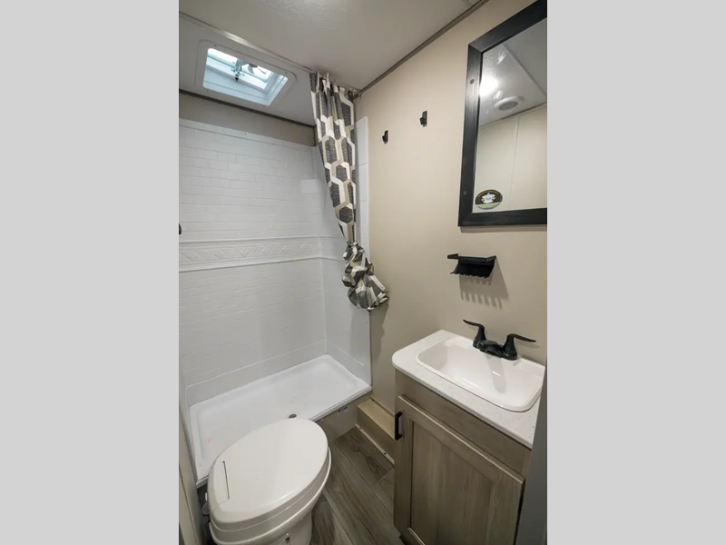 Sleeps 8 Slides 1 Length 28 ft 4 in Ext Width 8 ft Ext Height 11 ft 1 in Int Height 6 ft 9 in Hitch Weight 762 lbs GVWR 7762 lbs Dry Weight 5872 lbs Cargo Capacity 1890 lbs Fresh Water Capacity 38 gals Grey Water Capacity 44 gals Black Water Capacity 30 gals Number Of Bunks 2 Available Beds Queen Refrigerator Size 10.7 cu ft Cooktop Burners 3 Shower Size 24" x 40" Number of Awnings 1 LP Tank Capacity 20 lbs. Water Heater Type Tankless On Demand AC BTU 13500 btu Awning Info 14' Electric with Multicolored LED Light Strip Axle Count 2 Number of LP Tanks 2 Shower Type Sunken Tub/Shower Electrical Service 30 amp Similar Floorplans